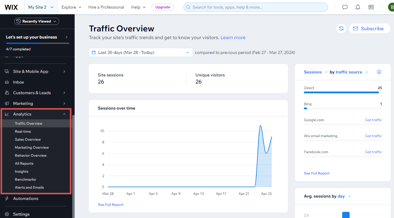 Wix provides a whole suite of Analytics dashboards you can use to track your website’s performance.